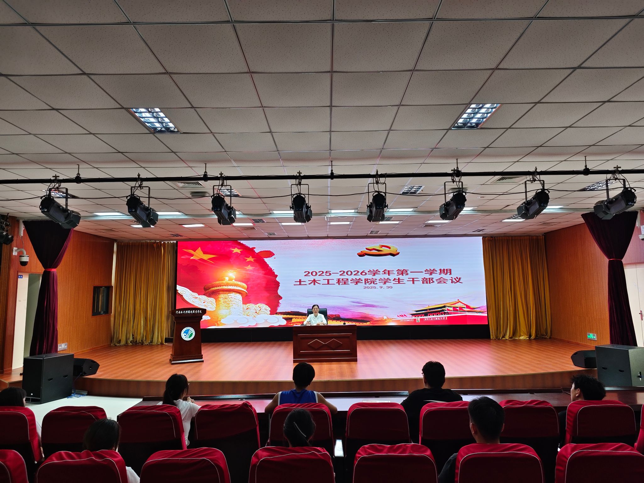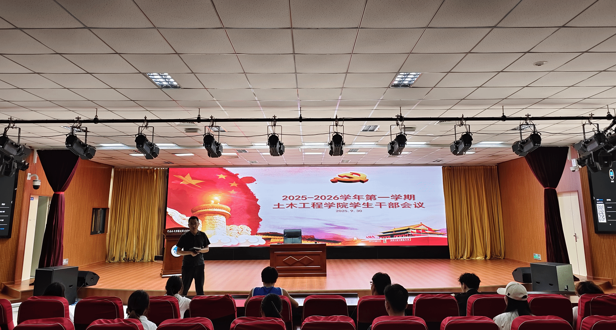 为统一思想、凝聚共识,部署学生工作重点,并进一步加强网络思想政治引领,土木工程学院9月30日下午在学校德礼讲堂召开学生干部大会暨网评员专项工作会议。学院党总支书记李文君出席会议并作主旨讲话,团委学生会全体成员、各班班团干部及学院网评员队伍参加了本次会议。会议由学院党总支副书记武锡颖主持。