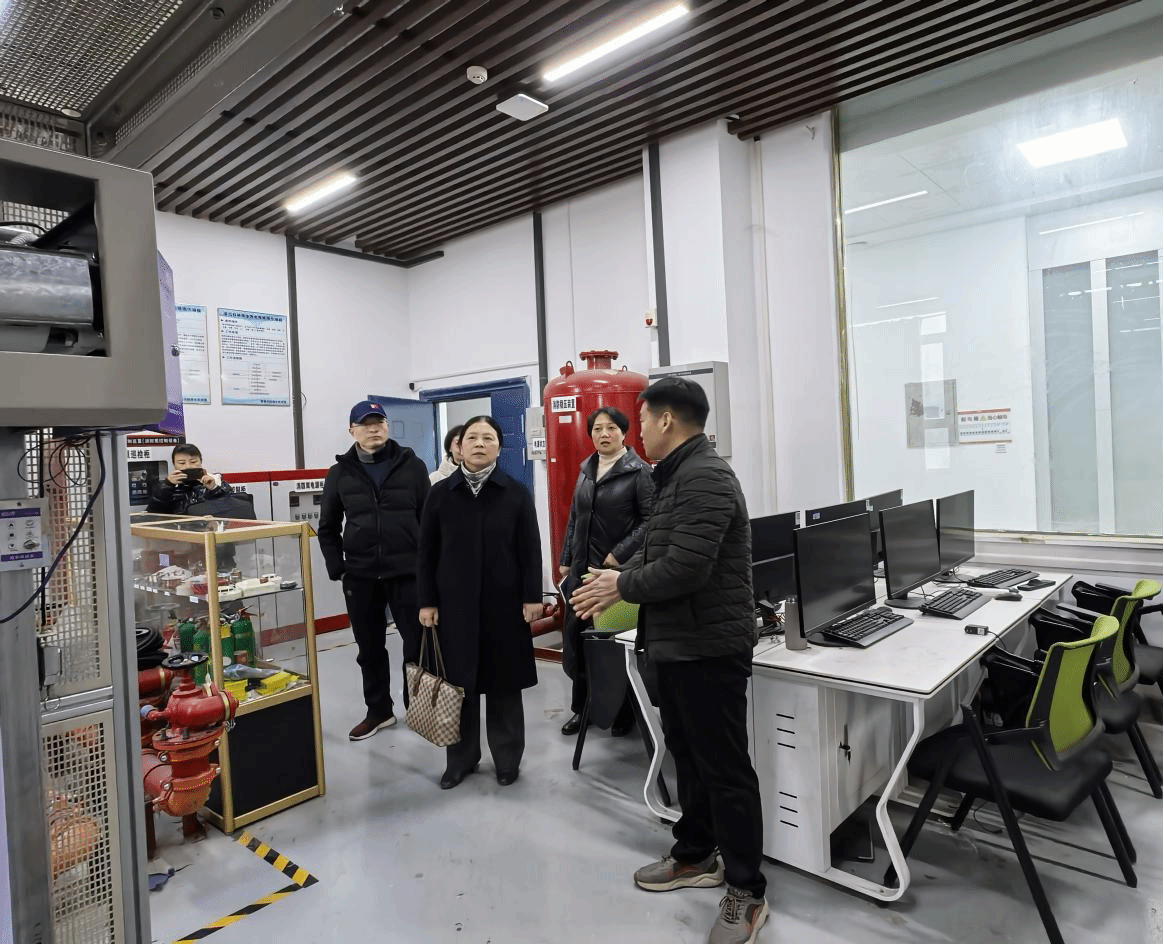 会后,我校调研团队实地参观智慧消防实训室,全面了解实训基地设备配置、教学运行及管理模式等情况,并给予高度评价。